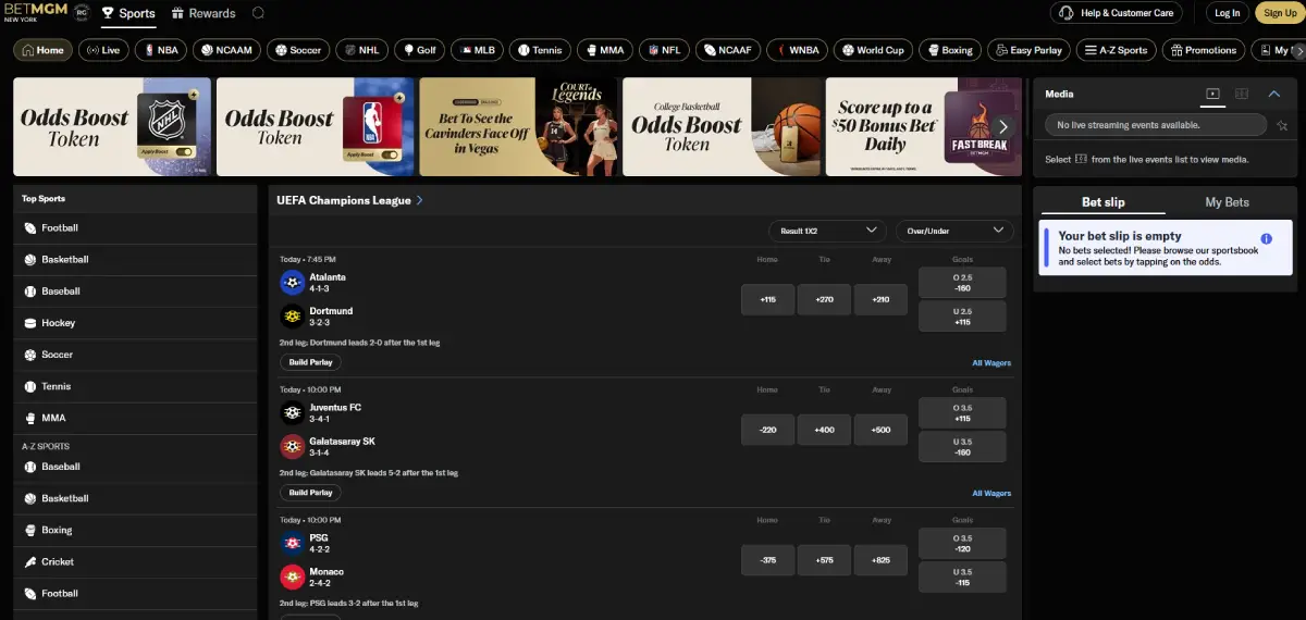 - Live betting and streaming available
